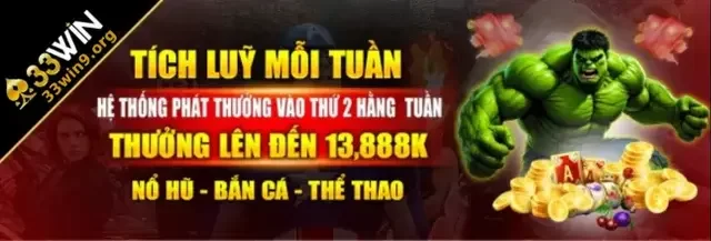 Các ưu đãi tại 33WIN9 mang đến cơ hội gia tăng phần thưởng và trải nghiệm giải trí trọn vẹn cho người chơi. Từ thưởng lần đầu, hoàn tiền nạp lại, đến chương trình VIP và các ưu đãi cho Slot, Bắn Cá, mọi thành viên đều có cơ hội tận hưởng niềm vui và săn thưởng hấp dẫn. Hãy tham gia ngay để không bỏ lỡ những lợi ích và phần thưởng đặc biệt tại 33WIN9.